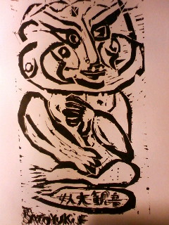 輪郭を彫ってから刷る作品が裏であり、