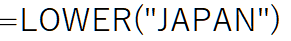 | すべて小文字 | =LOWER(“japan”) | japan |
