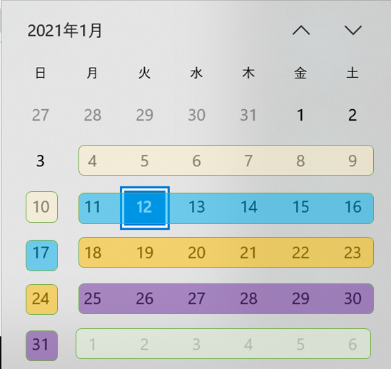 2021/25 ~ 2021/1/31 → ISO週番号が、4である。