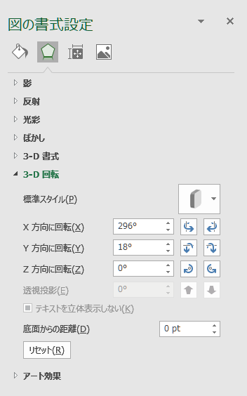 図形の効果 – 3-D回転 図の効果– 3-D回転