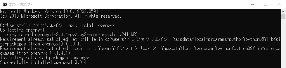 OpenPyXLのインストール方法