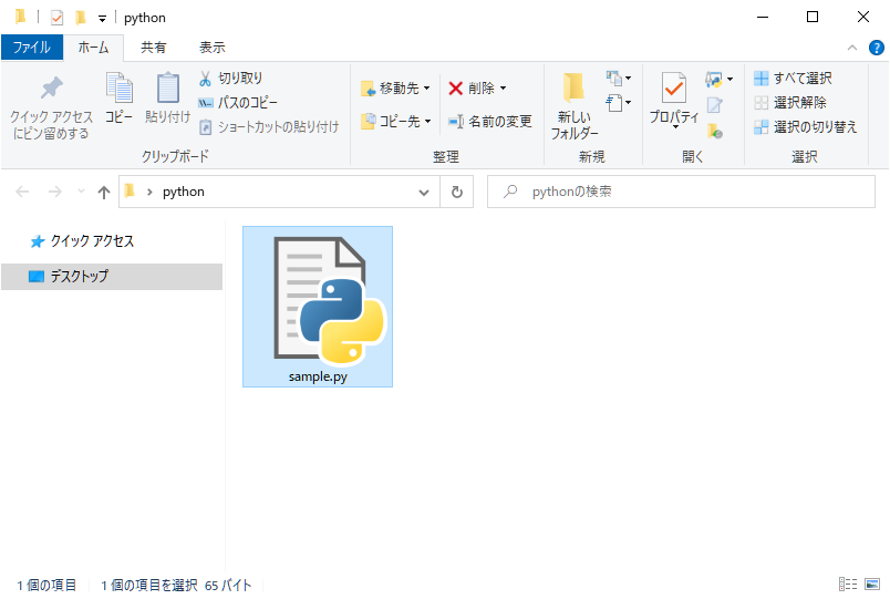 sample.py のパスまで行って、sample.py を実行