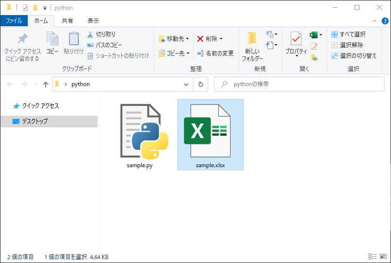 エクセルファイル「sample.xlsx」が作成されます。